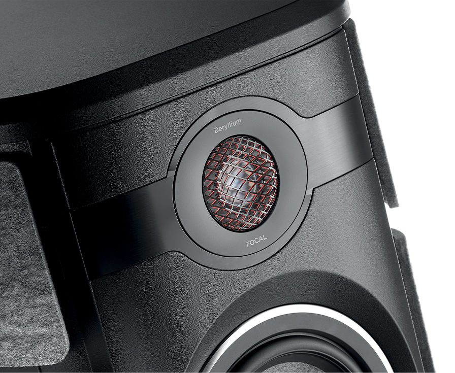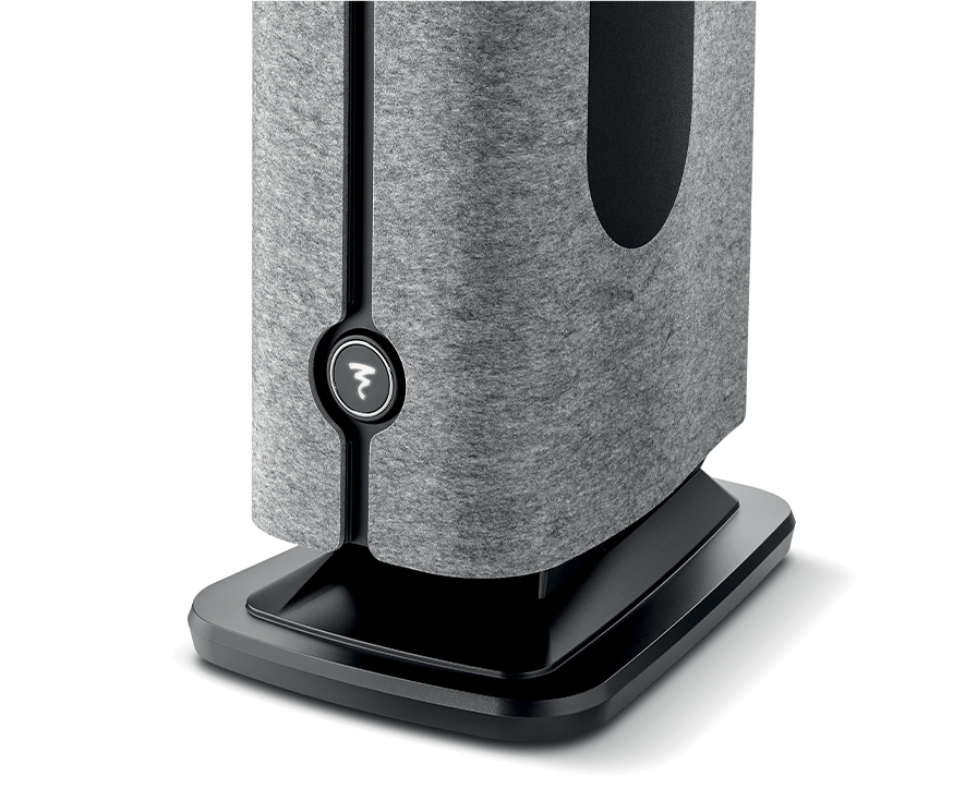 The side panels are designed to be both floating and removable, adding a versatile element to the speaker. They are crafted from felt, an OEKO-TEX®-certified material known for its durability and aesthetic appeal. These panels feature refined lines and include a signature opening in the front to elegantly house the backlit Focal logo. Positioned behind the panels, the bass speakers are subtly integrated on the sides, enhancing the overall sound diffusion.