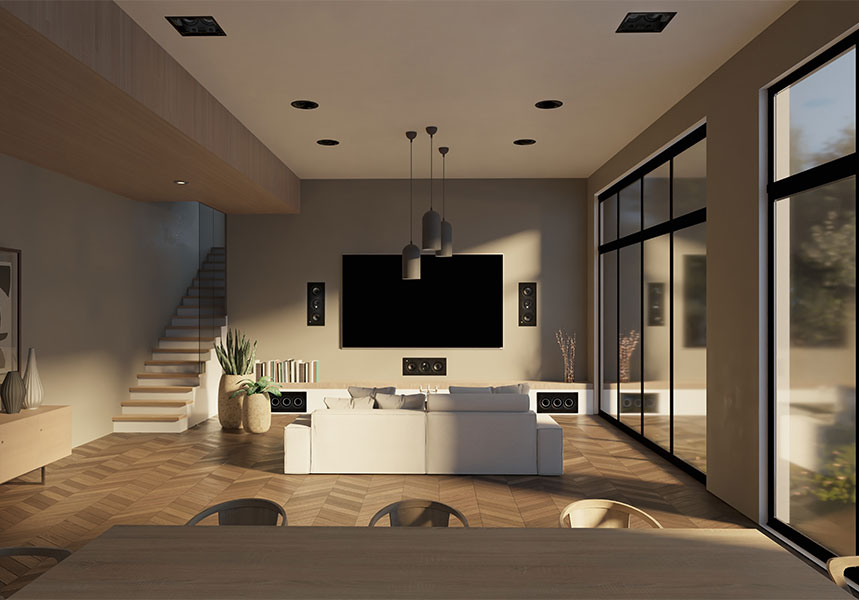 The 1000 IW6 integrated loudspeaker offers a truly compact, invisible alternative to a traditional acoustic installation for your home. Thanks to its sound performance, it's the ideal choice for a home cinema system, especially as a rear channel integrated into a wall, offering musical, high-performance sound reproduction.