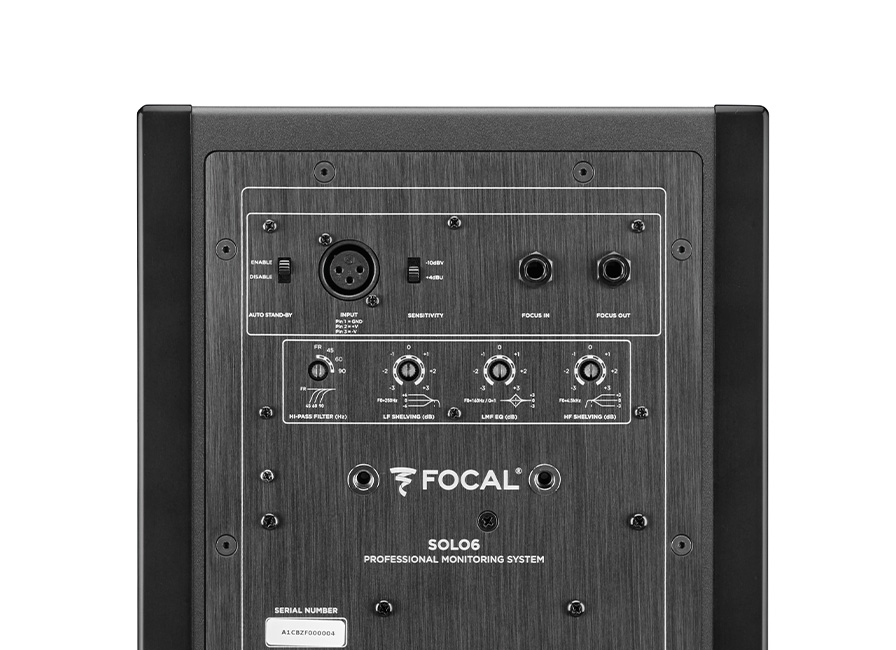 Solo6 features a variable high-pass crossover and a 160 Hz parametric crossover to reduce reflections from the console or desk. It also features a high-pass crossover and a disengageable automatic standby mode accessible via a switch, offering a simple and essential option for loudspeaker control.