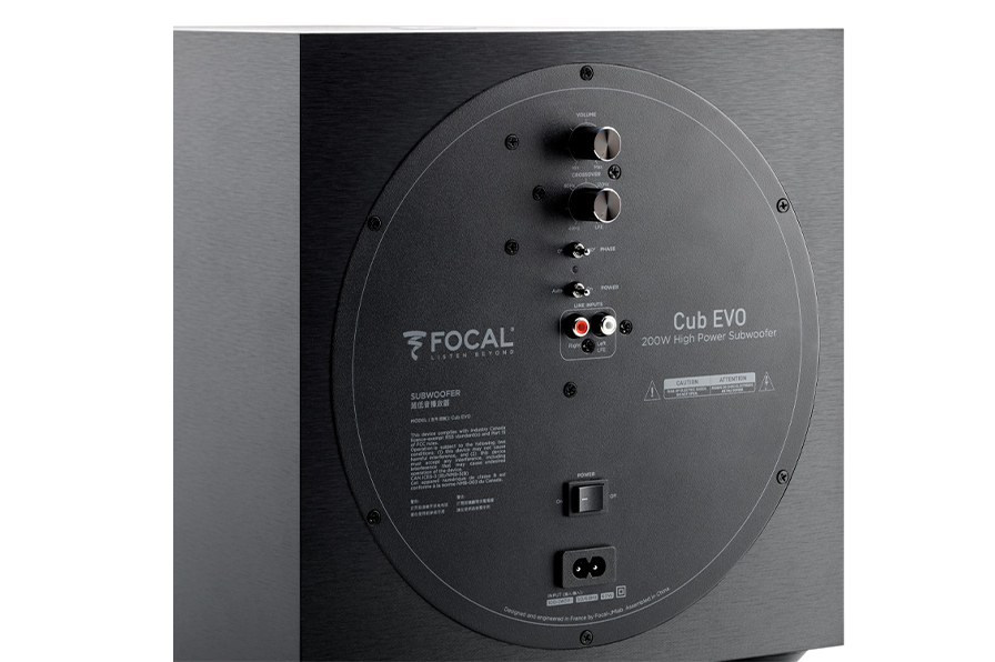 To meet the demands of the listening environment, Cub Evo offers all the features of Focal subwoofers: crossover, phase inversion, autopower ON/OFF function, LFE input... Its 200 W amplifier (Class D) delivers powerful, dynamic frequencies worthy of larger equipment.